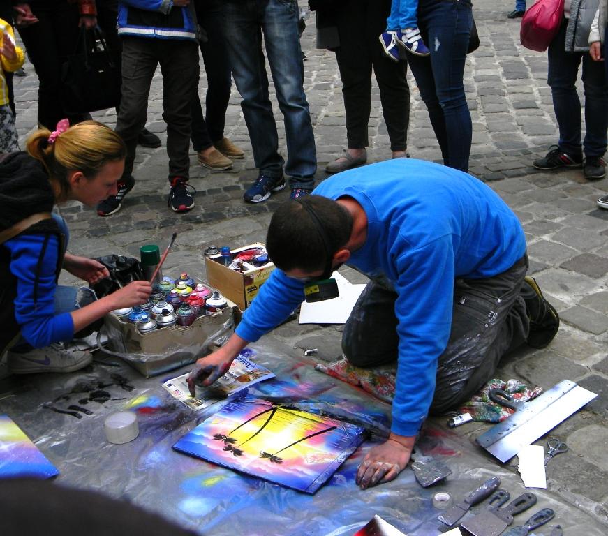 Двое художников на глазах публики в считанные минуты создавали шедевры.