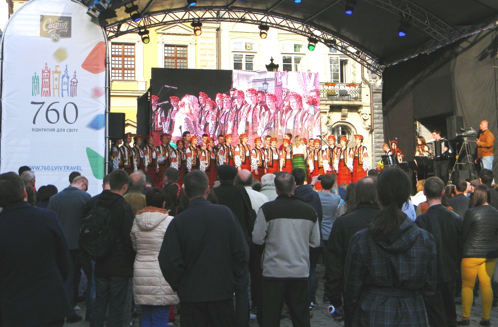 Мы прибыли в этот древний город как раз тогда, когда он отмечал свое 760-летие. По этому поводу там творилось какое-то карнавальное безумие. Люди, правда, были не в масках, но в национальных одеждах. В основном преобладала украинская тематика.
