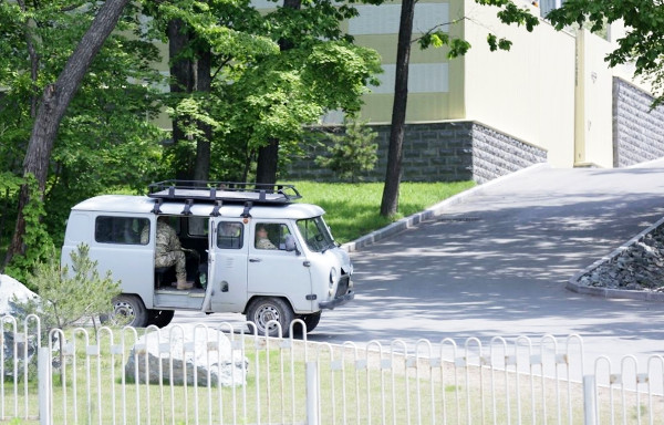 Владивосток, 1 июня 2016 года. На повороте к дому мэра стоят машины без номерных знаков. Фото: © ООО «ВЛ Новости» Оперативники ФСБ оцепили здание мэрии на Океанском проспекте, с утра возле него дежурят люди в масках и с автоматами, сообщает агентство «Восток-Медиа». По некоторым данным, из кабинетов муниципалитета изымают документацию. Марковцев подтвердил, что с утра в администрации города проходят обыски. По его словам, сотрудники ФСБ изъяли документы, телефоны заместителей мэра, их самих допросили.