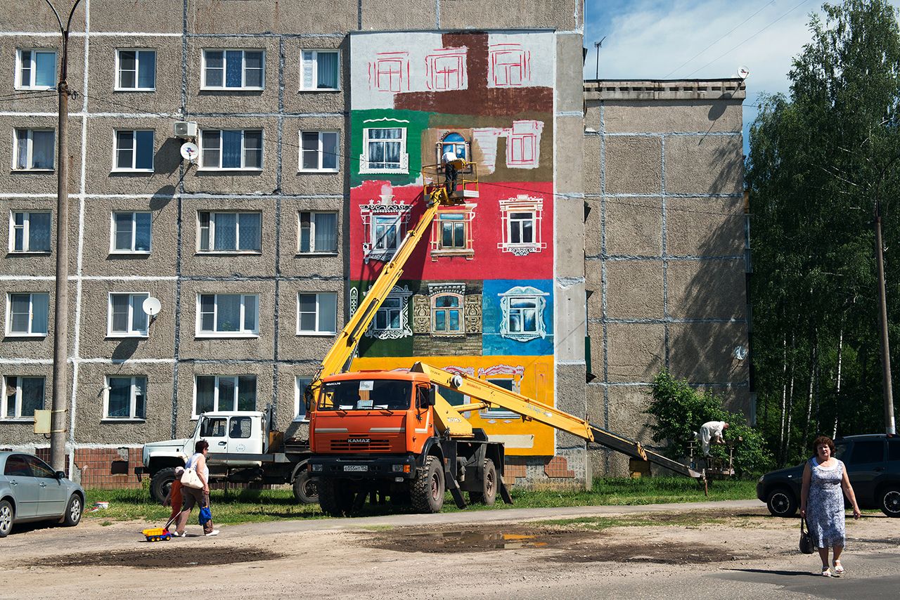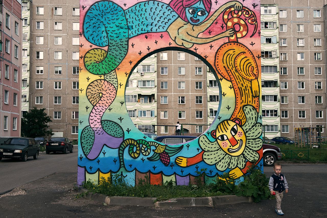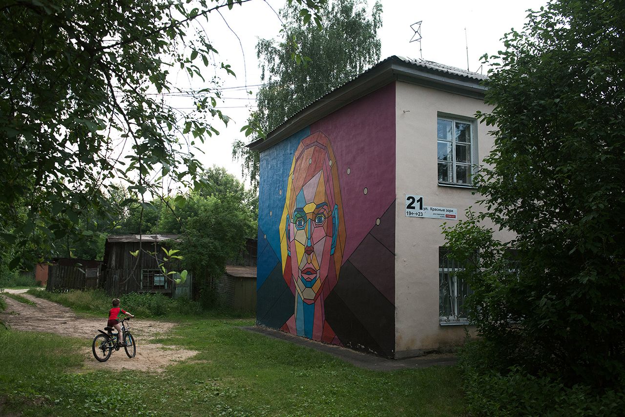 3 июня в городе Выкса Нижегородской области открылся «Арт-Овраг» — ежегодный фестиваль городской культуры, главную роль в котором играют арт-объекты, расположенные в микрорайонах, на набережных и в парках. «Арт-Овраг» проводится с 2011 года. На время проведения фестиваля Выкса, по заявлению организаторов, становится «столицей российской городской культуры». Фотограф Елена Чернышова снимала в Выксе несколько раз в течение года — на ее снимках представлены как знаменитые городские арт-объекты, так и сцены из повседневной жизни города, в котором живет около 53 тысяч жителей.