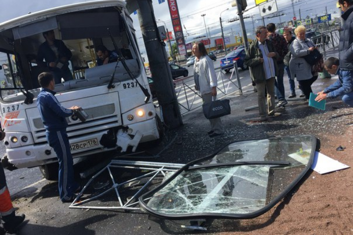 пишет «Фонтанка.ру» со ссылкой на ГИБДД. Авария произошла на улице Типанова, напротив гипермаркета «ОКей». По сообщениям очевидцев в соцсетях, водитель автобуса попытался обогнать легковой автомобиль. Когда загорелся красный сигнал светофора, по данным ГИБДД, автобус резко затормозил и в результате протаранил ограждение. Пострадали двое пассажиров — мужчина и женщина 1965 года рождения.