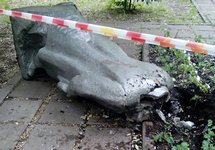 В центре Москвы, на улице Климашкина в Пресненском районе, неизвестные снесли памятник Ленину. Об этом сообщает Life. У упавшей статуи отколота голова; предполагается, что это случилось вследствие удара о землю.