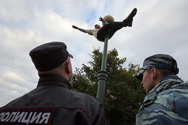 Некий молодой человек залез на фонарный столб и начал кричать: «Кадыров — герой России». Со сцены попросили «деликатно снять» нарушителя порядка и пошутили, что он ведет себя как член городской топонимической комиссии. Молодой человек так и просидел на фонаре до конца митинга, потом спустился на землю и был задержан полицейскими.