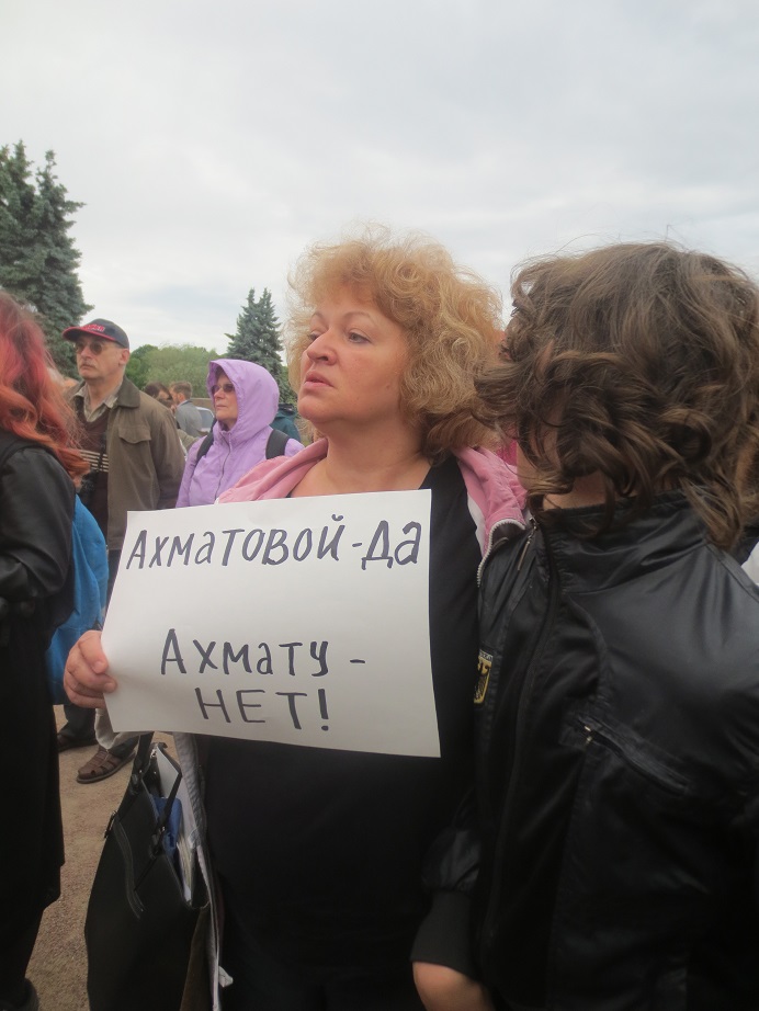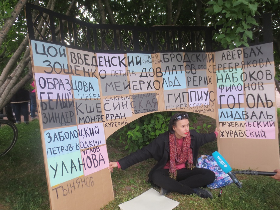 Так все совпало — митинг, день рождения Пушкина и даже место — есть знаменитая картина Григория Чернецова «Парад на Марсовом поле», на которой запечатлен Александр Сергеевич в толпе горожан. И Пушкин, который у нас по сложившейся российской традиции за все в ответе, незримо присутствовал в рядах митингующих. Тем более, что, по мнению большого числа горожан, откликнувшихся на призывы в соцсетях, мостам, улицам и площадям в Петербурге в первую очередь нужно присваивать имена выдающихся поэтов, писателей, музыкантов, деятелей культуры и науки. На импровизированном, сделанном из картонных коробок мостике через канал любой желающий мог написать имя, достойное украсить реальный мост. И там в первых рядах значились Гоголь, Бродский, Набоков, Довлатов, Заболоцкий, Зощенко и многие другие. «Ахматова — да, Кадыров — нет!» — с таким самодельным плакатом пришли на митинг многие петербуржцы.