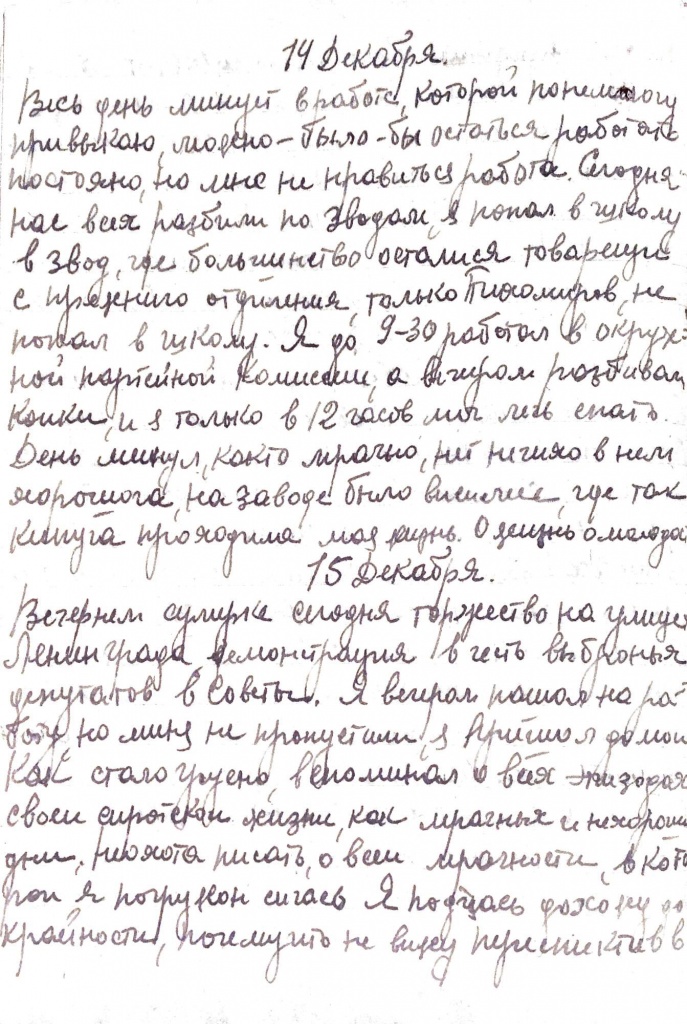 Страницы дневника за декабрь 1937-го — последний месяц года начала Большого террора, которого токарь Белоусов не заметил