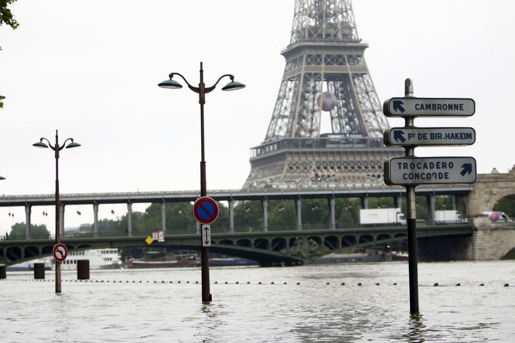 В преддверии Евро-2016 во Франции нелады с погодой: Сена вышла из берегов из-за сильных дождей, Париж, 2 июня, 2016 года