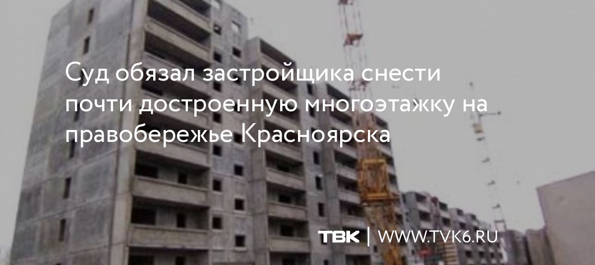 Суд обязал застройщика снести почти достроенную многоэтажку на правобережье Красноярска