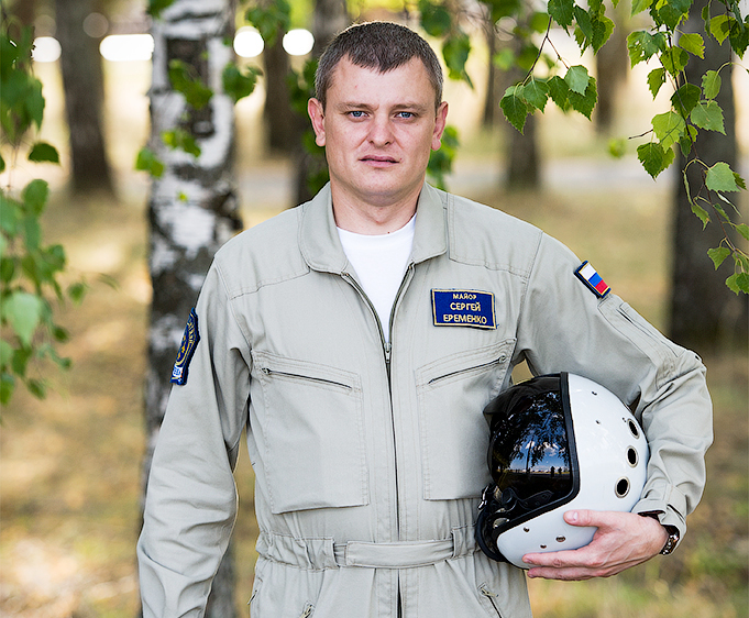 За штурвалом разбившегося Су-27 находился командир звена авиационной группы высшего пилотажа «Русские витязи», 34-летний военный летчик 1 класса гвардии майор Сергей Еременко. Он не успел катапультироваться и погиб. Про него известно, что за время прохождения службы в истребительном авиаполку он освоил самолеты Як-52, Л-39, МиГ-29, Су-27, налетав на этих типах самолетов 800 часов. Высшим пилотажем Еременко занимался с 2011 года.