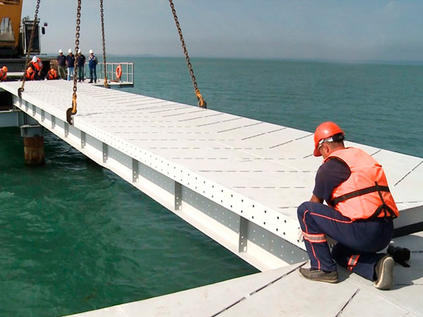 Управление федеральных автомобильных дорог «Тамань» сообщило о начале монтажа первого пролета Керченского моста. Работы начались на сухопутных участках моста в районе озера и косы Тузла. Всего строители должны собрать и смонтировать в общей сложности 287 автомобильных и 306 железнодорожных пролетов. По информации сайта, на сборку каждого пролета потребуется около месяца, после чего рабочие начнут укладывать плиты проезжей части и формировать автодорожное полотно.