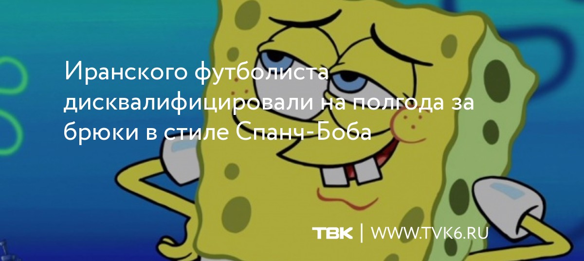 Иранский футболист получил полугодовую дисквалификацию за фото в желтых брюках в стиле мультперсонажа Спанч-Боба.
