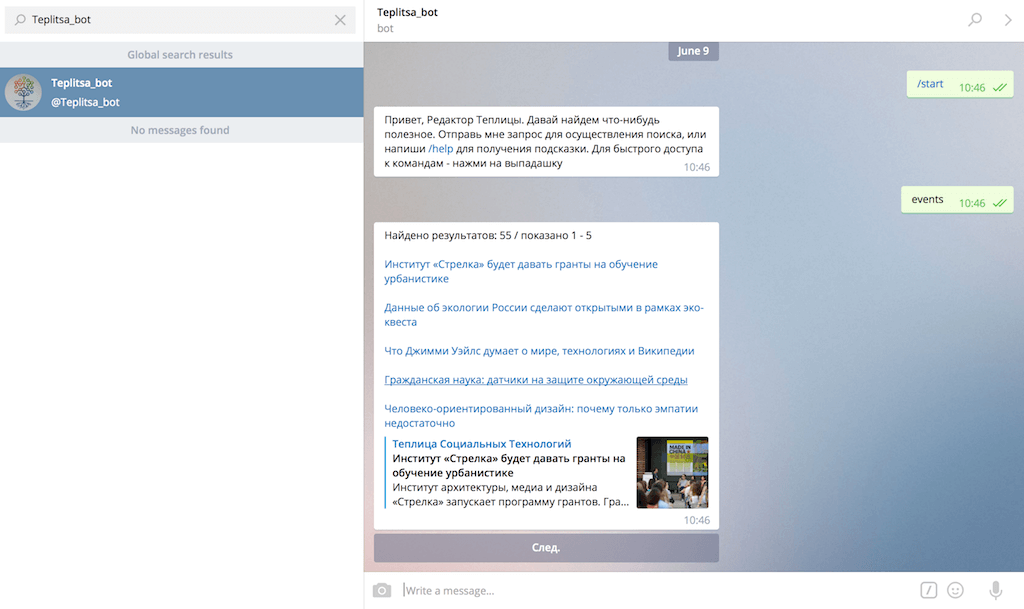 Если ваши друзья пользуются каким-то классным ботом, они легко могут поделиться с вами его контактом прямо внутри мессенджера. На бот можно давать ссылки, боты даже могут рекомендовать друг друга. В случае работы в Slack любой участник рабочей группы может добавить бот так, чтобы он был доступен всей команде.