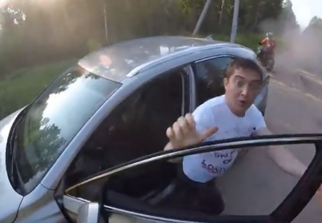 «Кулаком в шлем, в ответ – сразу в челюсть, дальше на землю и ногами. Тот даже машину остановить не успел», – заявил за кадром автор репортажа.