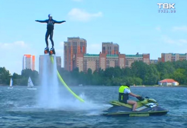 В Красноярске появился флайБорд – это когда человек поднимается вверх на струях воды. Организаторы развлечения говорят, что с первой попытки сделать что-то зрелищно вряд ли получится, но научиться может каждый.