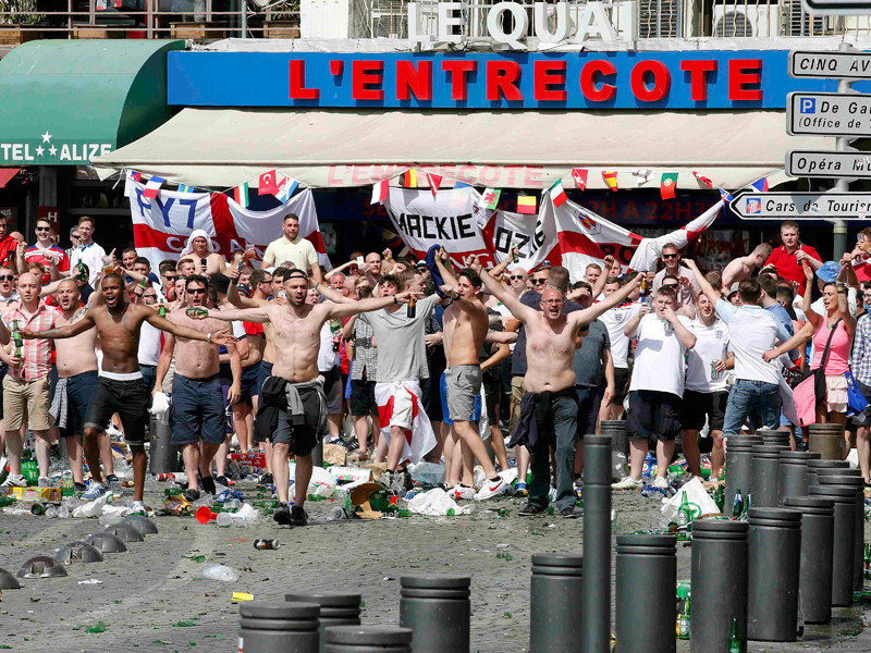 В Марселе происходят новые столкновения фанатов перед матчем Россия-Англия. По данным Mirror, на мирных английских болельщиков в одном из уличных кафе напали французские дебоширы. Репортер британского агентства Press Association Том Уайт в своем Twitter публикует видео стычки: он считает, что это было столкновением между английскими и русскими фанатами. По мере приближения времени матча фиксируются все новые и новые инциденты: в одном из них, как утверждают очевидцы, болельщики России затеяли драку с превосходящими силами англичан. Минимум один из пострадавших в ходе столкновений госпитализирован в критическом состоянии.