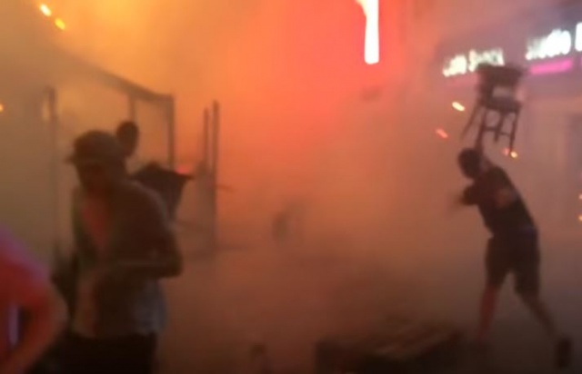 В ролике видно, что участники конфликта пускали в ход стулья и фаеры.