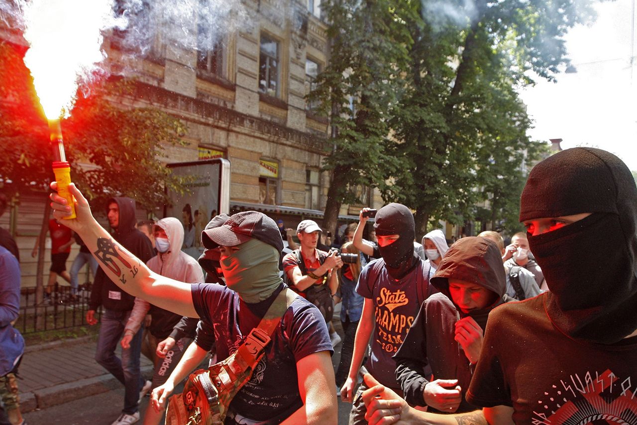 Среди убегавших было несколько человек с нашивками «Правого сектора» (организация признана в России экстремистской и запрещена). За месяц до марша спикер «Правого сектора» Артем Скоропадский написал в фейсбуке, что 12 июня ожидается «кровавая каша». В день акции он сказал, что «Правый сектор» специально не пришел — чтобы не было бойни.