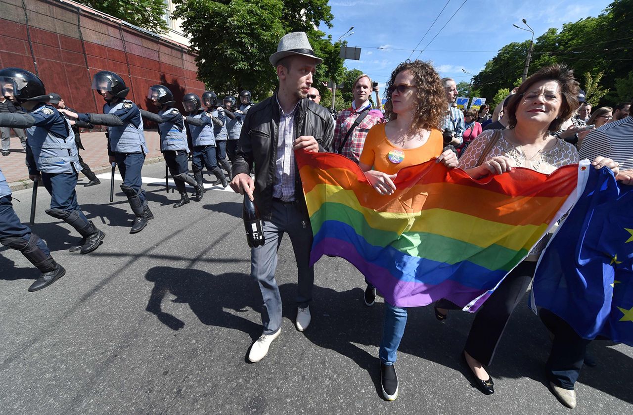 В большом парке было почти пусто — на лавочках сидели только полицейские. В 2016 году охранять ЛГБТ-шествие направили шесть с половиной тысяч правоохранителей, в три раза больше, чем в 2015-м. Тогда радикальные националисты смогли прорвать кордон милиционеров и забросали участников шествия петардами и дымовыми шашками. В стычках с ними пострадали и нацгвардейцы.