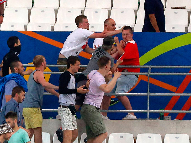 Первый матч российской сборной завершился вничью: России удалось сравнять счет в добавленное время второго тайма. Еще до его начала Марсель столкнулся с массовыми драками болельщиков. Не обошлось без них и на матче. После пуска сигнальной ракеты некоторым болельщикам удалось прорваться через барьеры, разделявшие фанатов России и Англии. Россияне попытались сорвать английские флаги и кидали в британцев посторонними предметами.