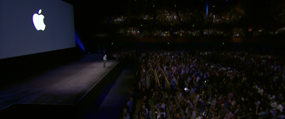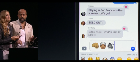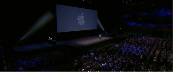 Нам за полтора часа рассказали про четыре операционные системы, чтобы еще полчаса втирать, какой классный iMessage. Ведущие на сцене пытаются совладать с эффектами, но получается так себе