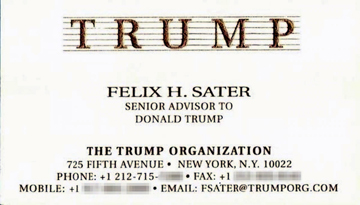 На визитке: «Феликс Сатер, старший советник Дональда Трампа»