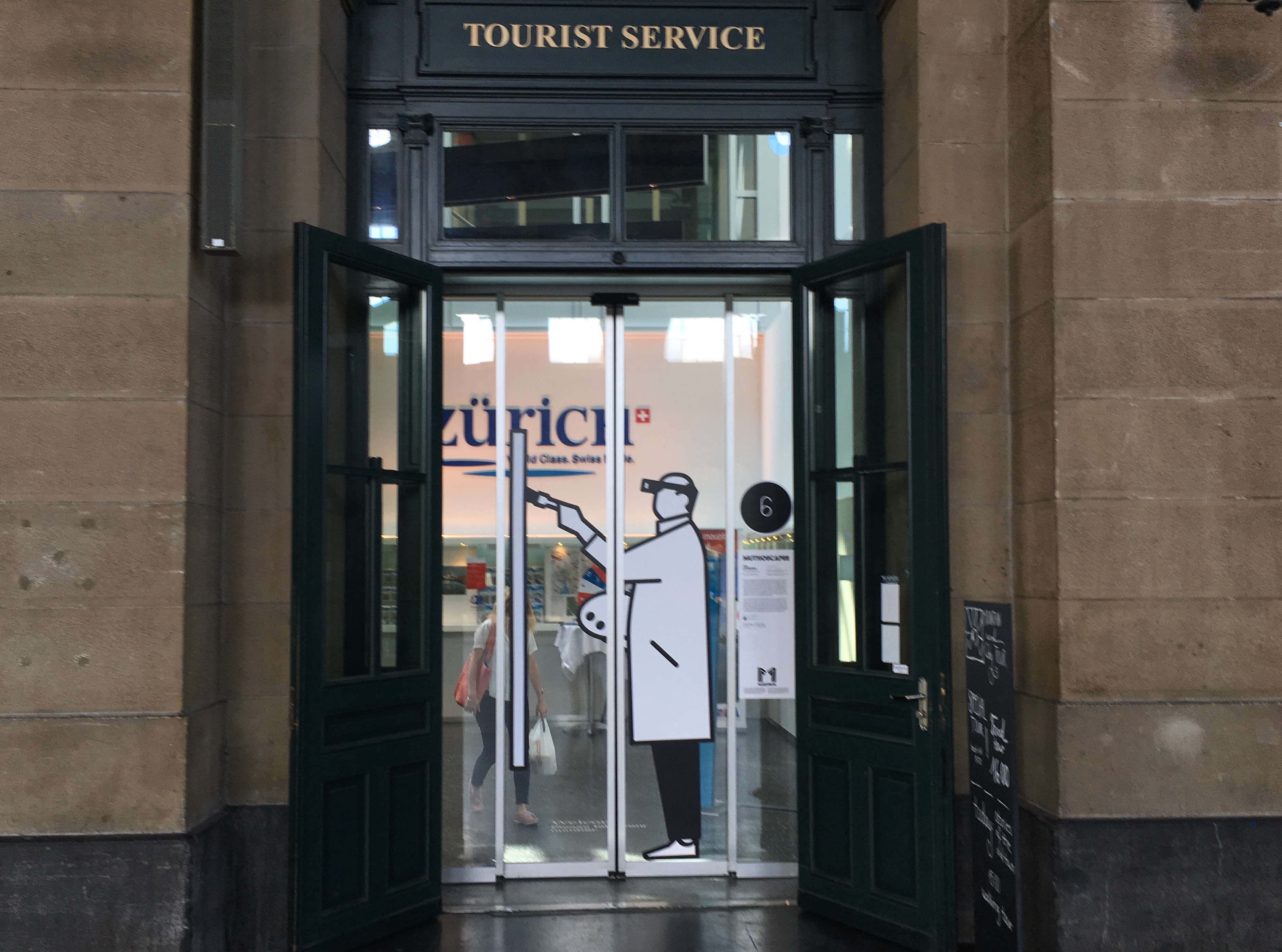 Помимо "Павильона отражений", есть еще две больших площадки, но десятки маленьких выставок "Манифесты" разбросаны по разным районам Цюриха, так что требуется карта, чтобы их отыскать. Например, на железнодорожном вокзале, среди брошюр и альбомов в офисе туристической информации, кроются пейзажи утонувшего континента Му, столь же нереального, как идеализированная туристическая Швейцария.