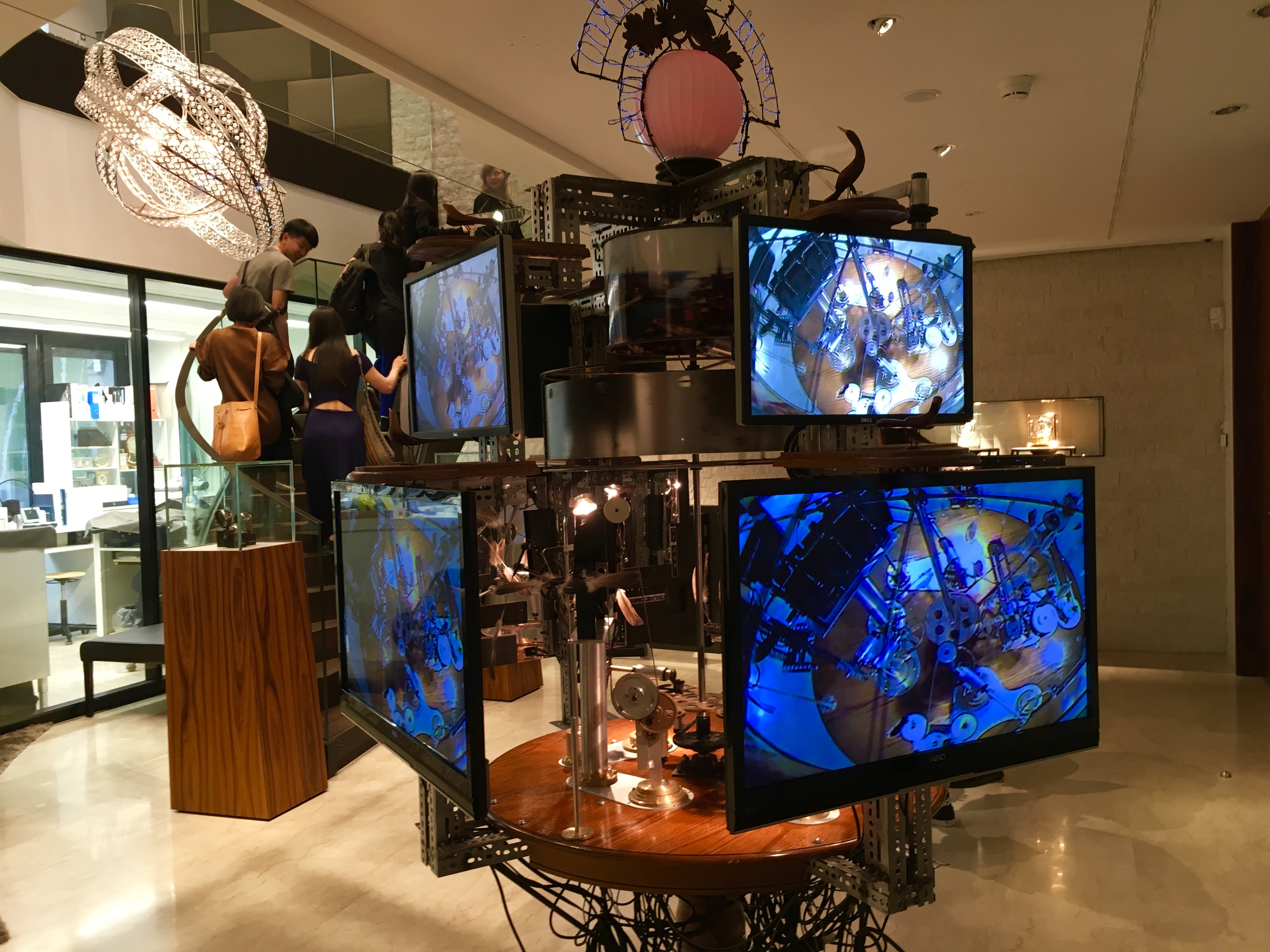 Джон Кесслер смастерил огромную кинетическую скульптуру вместе с часовых дел мастером: в шестерни вставлены перья, на мониторах дрожит орел, все крутится и стрекочет, мир превратился в часы с кукушкой, иными словами, спятил.