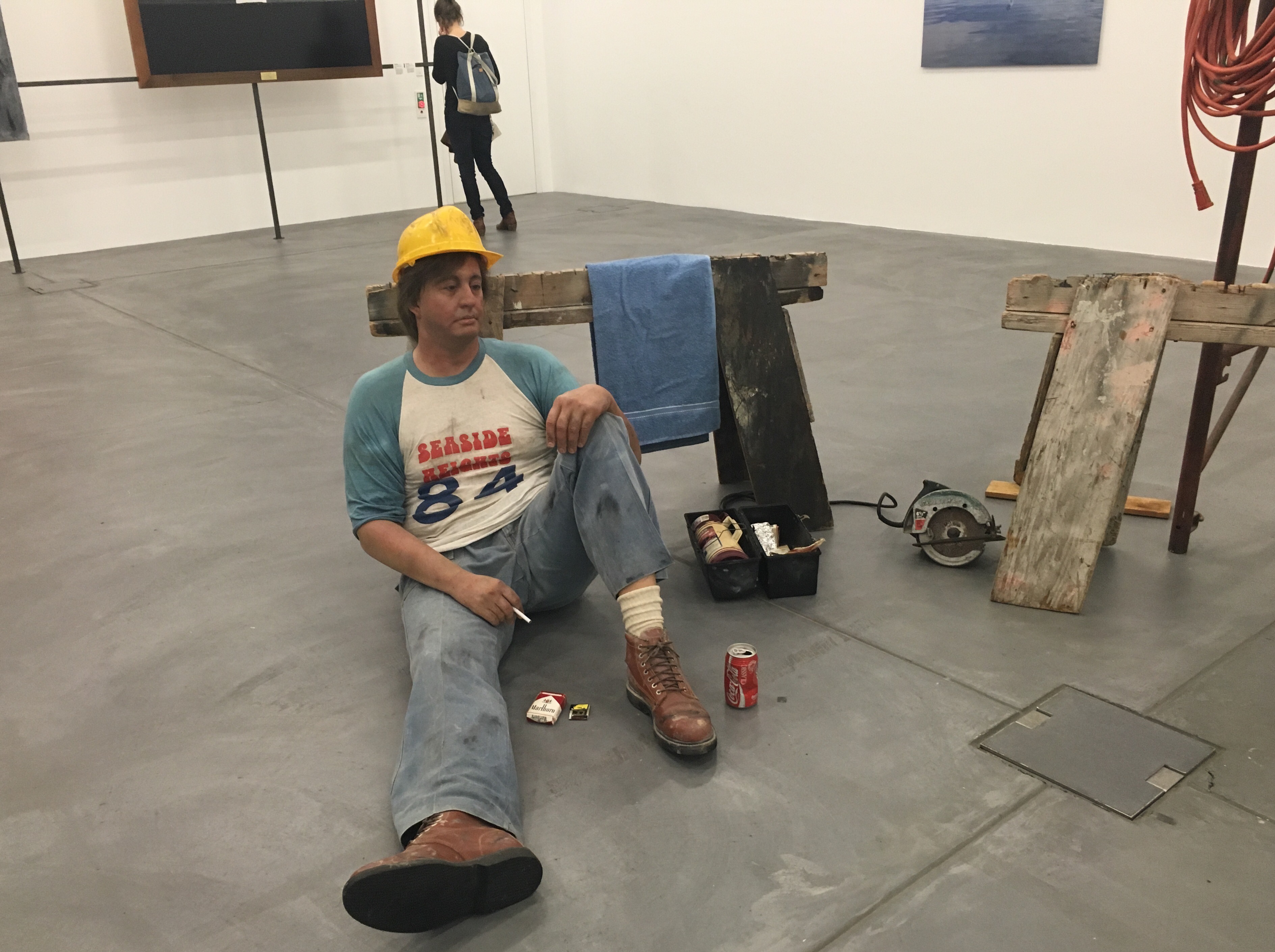 Упомянуты на выставке и российские труженики. В первом же зале выставки можно посмотреть на работников метрополитена, запечатленных Ольгой Чернышевой: работники хмуры, как Бастилия перед штурмом. Не осталась без внимания и такая важная часть рабочего дня, как обеденный перерыв. Человекоподобные скульптуры Шарон Локхарт отдыхают, как и положено простым строителям, но рядом на мониторе идет рассказ о более затейливом способе скоротать перерыв – принять галлюциногенный наркотик ДМТ, действующий столь недолго, что его называют "обедом бизнесмена".