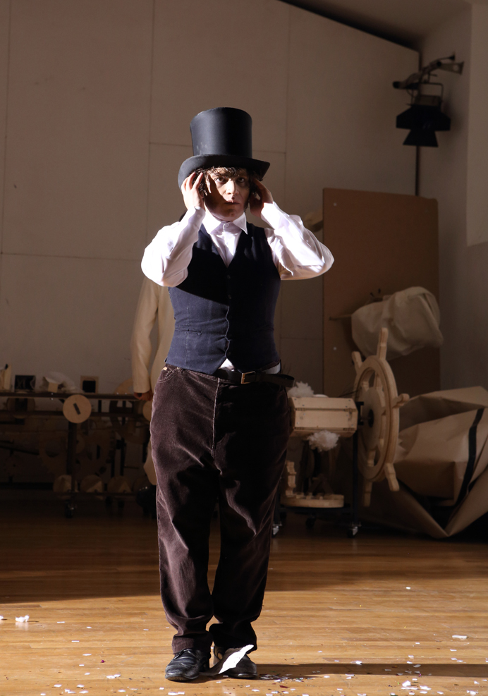 Размышления поэта о старости и молодости, о смерти и тлене, о прошлом и настоящем, о цветении и гниении в школьных классах навевали невероятную скуку, нас больше интересовал сюжет любовный, про «а счастье было так возможно, так близко». Крымов восстанавливает целостность восприятия романа и ради этого задействует в «лирических отступлениях» целую фабрику по производству смыслов. Фабрика состоит из сложнейших механизмов-транспортеров на ручном управлении: под скрип тяжелого деревянного колеса вдоль длинного верстака плывут, сменяя друг друга, то сугробы из ваты и деревца с зелеными листочками, то девочка-кукла с головой, повернутой назад, то чебурашка в цилиндре, то могилки родителей Татьяны, то припорошенное снегом-ватой деревянное тело погибшего Ленского. «Или не радуясь возврату погибших осенью листов, мы помним горькую утрату, внимая новый шум лесов…»