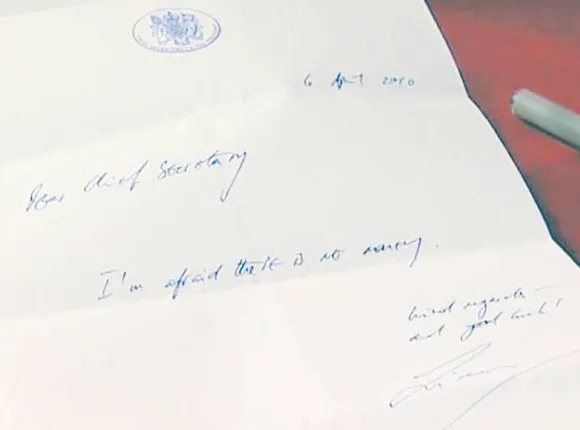 «Dear Chief Secretary, I’m afraid there is no money. Kind regards — and good luck! Liam».