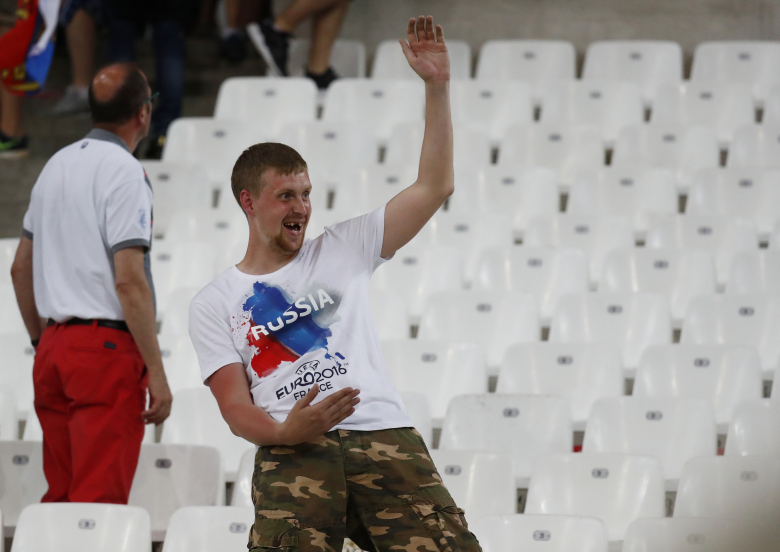 Футбольный фанат во время игры сборных Англии и России.