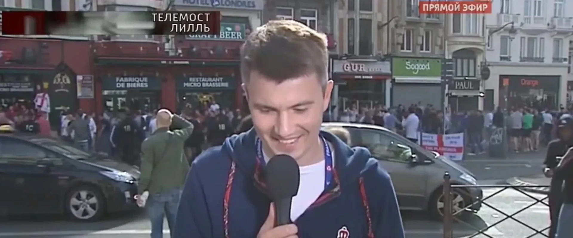 А вот спортивный комментатор канала «Россия» Владимир Стогниенко, выведенный в прямой эфир, проверку на патриотизм не прошел и был немедленно в этом уличен. Корчевников, представивший коллегу «Владимиром Гарниенко», попросил того рассказать, какая сегодня была обстановка на стадионе, ведь в прошлый раз, как известно, «английские болельщики пробрались в зону россиян». «Там вообще наоборот получилось, — опроверг его слова Стогниенко, — это наши прорвались».