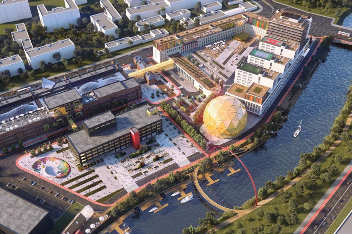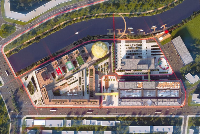 В рамках первой очереди планируется создать Центр творческих индустрий площадью более 30 000 кв.м. и тематический парк-аттракцион «Лабиринт мировой культуры», который займет 16500 кв.м. К весне 2017 года будут завершены работы по приспособлению под современное использование исторических зданий казарм Новочеркасского пехотного полка. Здания казарм соединят атриумом с прозрачной крышей. Здесь разместятся офисные помещения, шоу-румы, объекты стрит-ритейла, рестораны и кафе, центры образования, залы для деловых мероприятий, выставочные площадки. Вторая очередь проекта — это перестройка комплекса, примыкающего к Красногвардейской площади. Раньше его занимало Центральное конструкторское бюро машиностроения. В комплексе появятся Хобби-центр и отель на 220 номеров. Среди прочего в Хобби-центре планируется открыть творческие студии и арт-школы, лектории, магазины независимых дизайнеров, салоны красоты и фитнес-клубы, пространства для спортивных и культурных мероприятий. В башне, которую жители района называют«телевизором», разместится отель. Он будет выполнен в форме телевизора. На крыше комплекса появятся спортивные площадки для игры в футбол, теннис, баскетбол и другие виды спорта. Кроме того, в ходе второго этапа планируется благоустроить набережную реки Охта и парк. Также будет построен многоэтажный паркинг на 2000 машиномест.