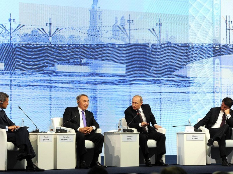 В ходе дальнейшей дискуссии с участием президента Казахстана Нурсултана Назарбаева, премьер-министра Италии Маттео Ренци и известного политического аналитика Фарида Закария Путин, отвечая на вопрос о перспективах новой «холодной войны», заявил, что этого не хочет ни Россия, ни Запад, но вместе с тем политика расширения НАТО свидетельствует, на его взгляд, «об абсолютно наплевательском отношении» к российской позиции.