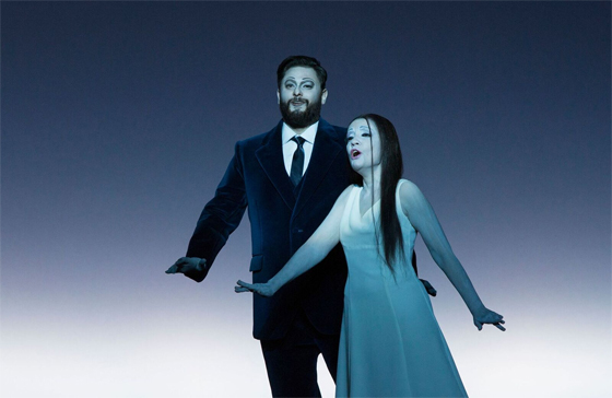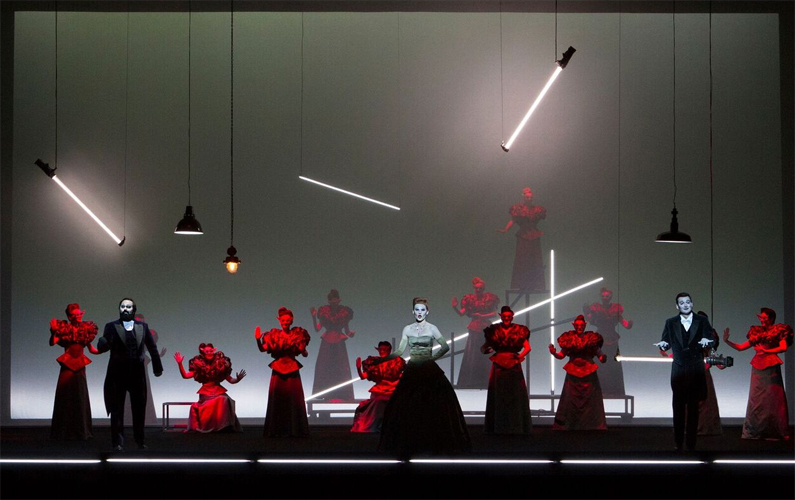 Спокойный юмор всех этих отставленных ножек и оттянутых ручек (знакомый московской публике по «Сказкам Пушкина» в Театре наций, а здесь особенно милый в исполнении прекрасного испанского тенора Айрама Эрнандеса, спевшего партию Альфреда) не отменяет общего гипнотического впечатления. В последнем действии главная героиня из куклы превращается в женщину с распущенными волосами, но все-таки не совсем живую, а скорее — античную героиню. Она поет не о личных перипетиях, а о Любви, Жизни, Смерти, Свете и тому подобных понятиях с большой буквы. И ей веришь. Поддерживает ее в самые ответственные моменты разгорающаяся позади нее полоса света и каждую секунду — оркестр MusicAeterna с Теодором Курентзисом.