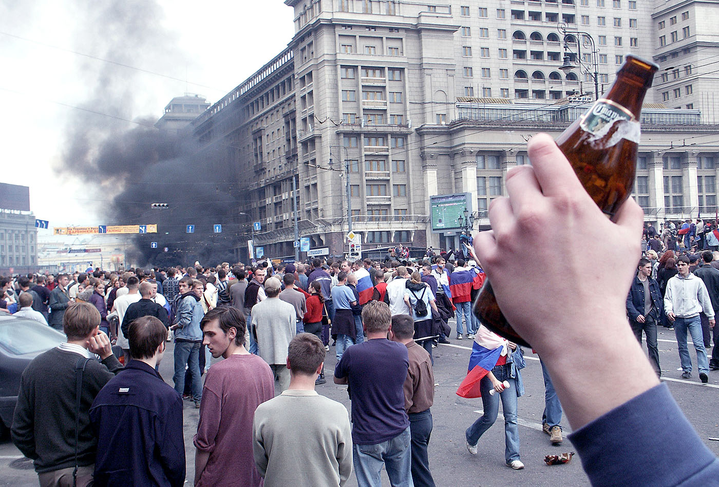 Болельщики на Манежной площади в Москве после матча между Россией и Японией в 2002 году. Фото: Дмитрий Коробейников / РИА Новости