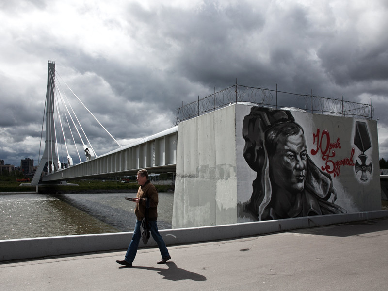 Неизвестные испортили портрет Юрия Буданова рядом с "мостом Кадырова" в Петербурге