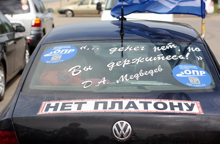 — Пробег этот родился после нашего длительного стояния в Химках [в Москве], когда мы возмутились системе «Платон». СМИ про нас ничего не рассказывали, получалось, что даже наши коллеги про нас ничего не знали. Поэтому мы начали автопробег с наглядной агитацией. Мы работаем через рацию с нашими коллегами: рассказываем и про экономическую ситуацию в стране, и про проблемы в нашей отрасли, и про то, зачем нужно объединение. Заодно мы ведем фото- и видеофиксацию состояния дорожного покрытия и инфраструктуры вдоль дорог. У нас и регистраторы, и камеры, и планшеты, — объяснил Бажутин.