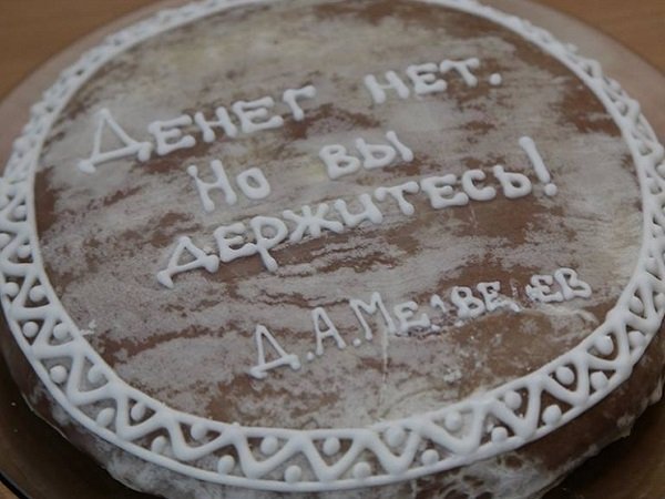 В Улан-Удэ компания «Байкальский пряник» начала производство пряников с надписью «Денег нет, но вы держитесь!», но тут же получила неофициальное предписание местных властей прекратить его. Об этом сообщает FlashSiberia со ссылкой на собственный источник.