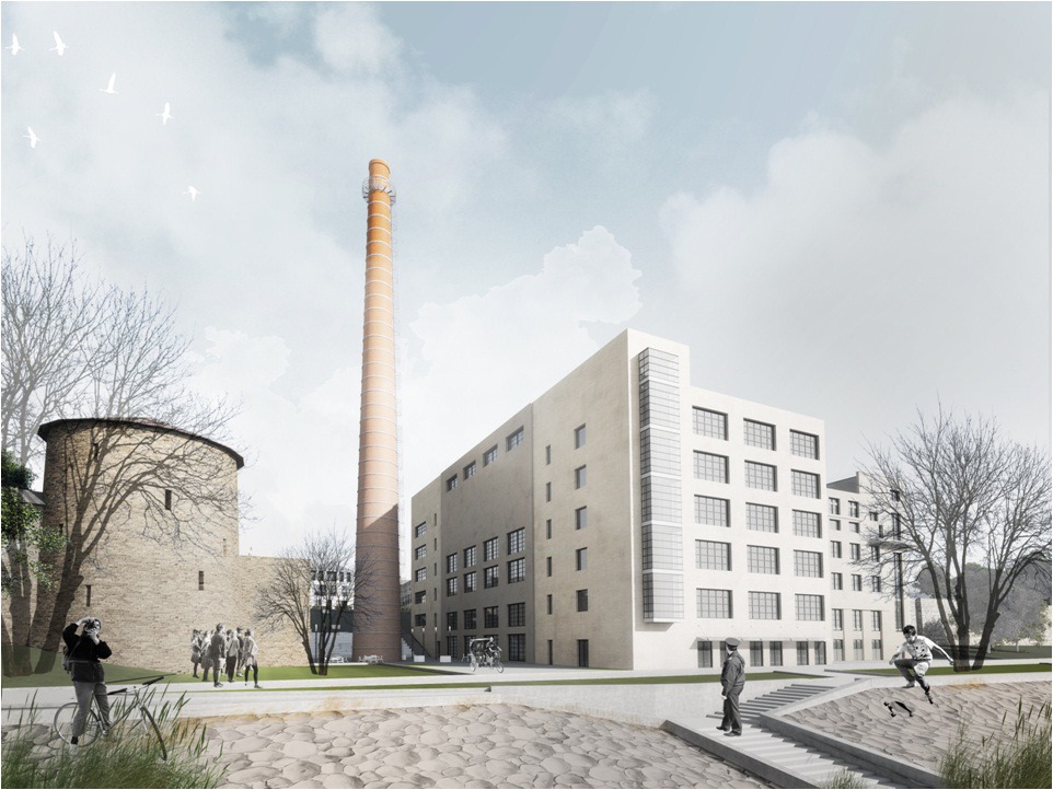 Еще один неожиданный ход: на самых первых эскизах «Студия 44» предлагает разобрать административное здание электростанции (отдельно стоящий четырехэтажный дом). Оно, объяснил Явейн, конкурирует с Мстиславской башней, а если его снести, то во-первых, раскроется вид на крепость, во-вторых, получится маленькая уютная городская площадь. Как и атриум, такое решение повышает качество городской среды, но снижает прибыль инвестора.
