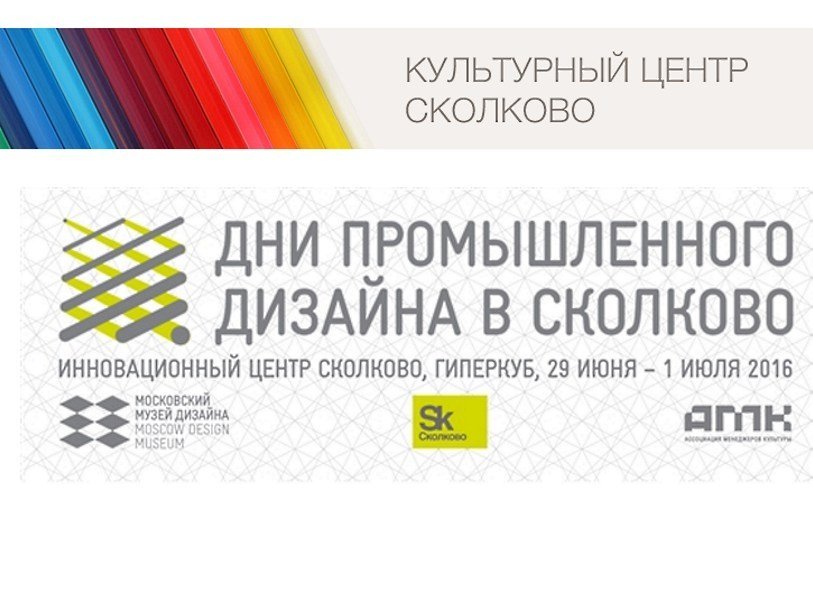 С 29 июня по 1 июля 2016 года «Сколково» станет международным центром промышленного дизайна. Впервые в Гиперкубе Инновационного центра «Сколково» будет сформирована экспертная, коммуникационная и просветительская платформа, способная наладить взаимодействие между промышленными дизайнерами и технологическим сообществом. Кроме того, в рамках дней промдизайна пройдет первый дизайн-хакатон, где промышленные дизайнеры получают опыт совместной работы с производителями инновационных продуктов.
