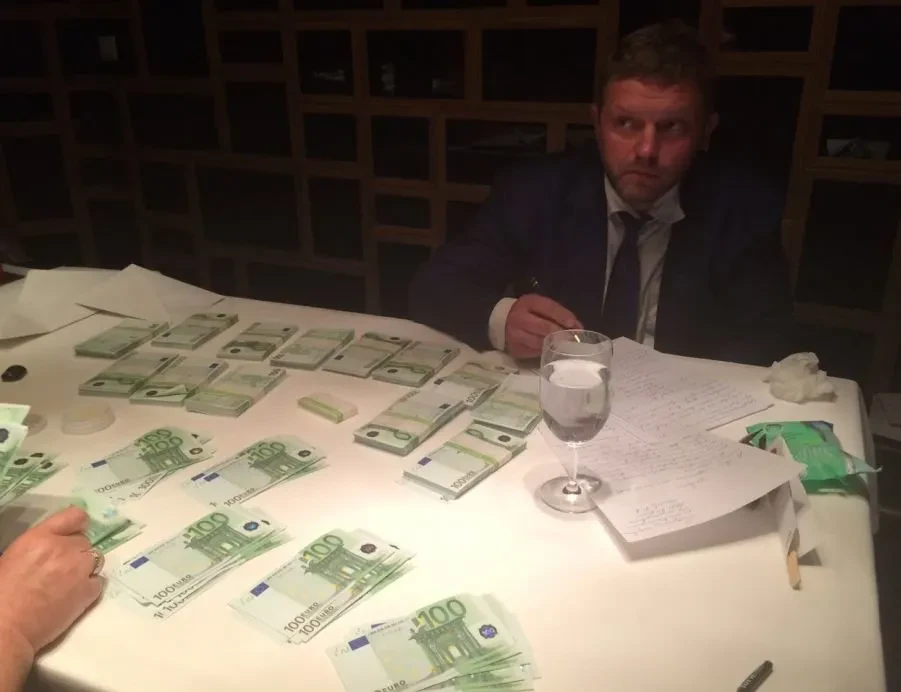 Следственный комитет сообщил о задержании губернатора Кировской области Никиты Белых при получении взятки в 400 тысяч евро (24,1 млн рублей). Ведомство молниеносно поделилось фотографиями оперативной съемки из московского ресторана, на них — губернатор сидит за столом, обложенном купюрами по 100 евро, он пишет объяснения, перед ним бокал воды. На другой фотографии в темноте руки Белых оперативник подсвечивает фонариком: купюры меченые. Уголовное дело открыто по части 6 статьи 290 УК РФ (получение взятки в особо крупном размере). Максимальное наказание по этой статье — до 15 лет лишения свободы.