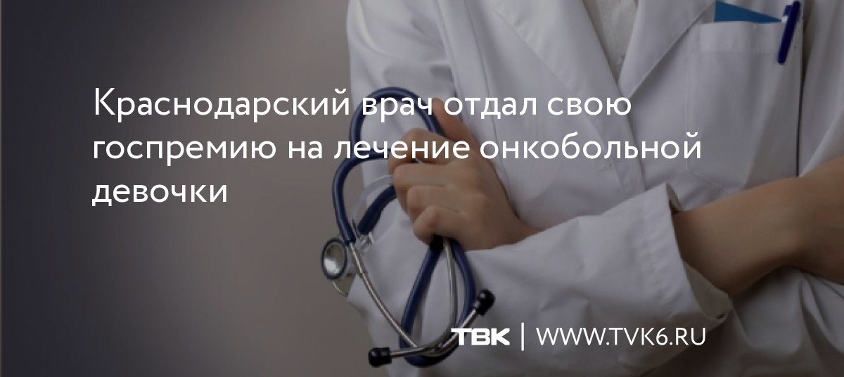 Краснодарский врач отдал свою госпремию на лечение онкобольной девочки