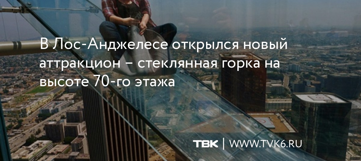 В Лос-Анджелесе открылся новый аттракцион – стеклянная горка на высоте 70-го этажа