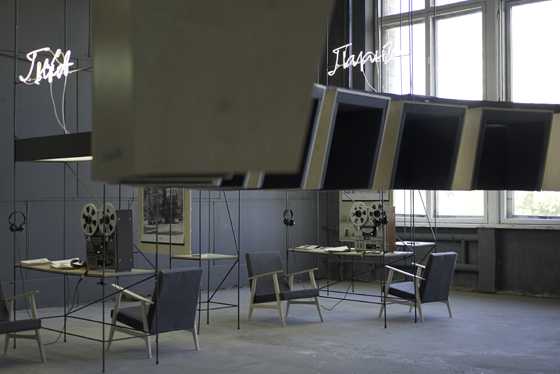 — Разумеется, содержание и форма находятся в гармонии. С одной стороны, я выполняю задание какого-то издательства, но при этом это ведь, конечно, трюк — это я создал институцию, способную давать мне такие заказы, которые никто другой не даст. Мне хотелось иметь какой-то миф. Так появилась светящаяся вывеска с названием издательства на доме, где проходит выставка. В моем представлении «Глущенкоиздат» всегда был многоэтажной башней с пустынными коридорами, массой кабинетов, и маленький я, командировочный, прихожу, получаю задание.