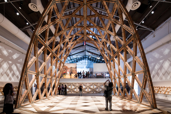 Несмотря на то что тема биеннале этого года — проекты для социально незащищенных слоев населения и исследования их жизни, ей нельзя отказать в зрелищности. В чем есть своя логика: бедность давно уже считается живописнейшей фактурой. И на этой выставке эстетика бедности складывается в свой стиль. Уже у самого входа на основную экспозицию зрителей встречают «натуральные» и «естественные» материалы — дерево, бамбук, холщовые веревки. Показателен проект «Бамбуковые битвы и стратегии» колумбийского архитектора Симона Велеса. Велес возводит из бамбука все более сложные структуры: не останавливаясь на жилых домах, он строит общественные центры и крупные репрезентативные объекты, для создания которых стволы бамбука рефорсируются бетоном. Бамбуковая архитектура точно соответствует основным исходным задачам биеннального нарратива Аравены: тут и дешевые материалы, и экологически устойчивое развитие проекта, и финансово необеспеченные заказчики, и поиски обновления устаревших архитектурных кодов.