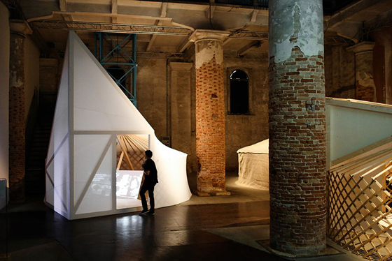 Наряду с профессиональными архитектурными проектами одной из важных тем выставки стало временное жилье. На биеннале показаны лагеря для беженцев и переселенцев, военизированные временные поселения. Самые массовые временные поселения, как выяснилось, имеют религиозный характер. Таков, например, город, строящийся раз в 12 лет по случаю религиозного индуистского праздника Кумбха-мела. Этот моментально разворачивающийся проект имеет ни с чем не сравнимый масштаб — он рассчитан на 100 миллионов человек при одновременной вместительности до 5 миллионов. Таким образом, каждые 12 лет отдельная сельская местность претерпевает самый радикальный процесс урбанизации. Как подчеркивает Аравена, подобные эфемерные спонтанные города-призраки — именно тот контекст, который может породить сейчас новые пространственные и архитектурные формы, хотя зачастую кажется, что во временном поселении сложно разглядеть собственно архитектуру.