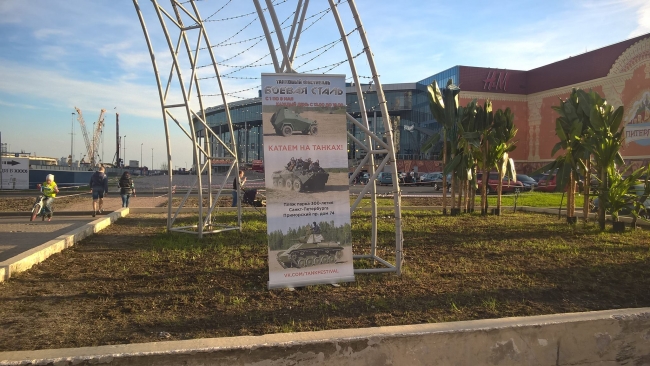 Это не первый случай, когда «МилитариСтайлТур» (МСТ) оказывает платные, но неучтенные услуги во время «фестивалей». В начале мая на танковом фестивале «Боевая сталь» желающие прокатиться на БТР в парке 300-летия Петербурга за три минуты кайфа на броне платили триста рублей, а мужчина в камуфляже, ничуть не смущаясь, под нашу камеру, складывал деньги в карман цвета хаки.