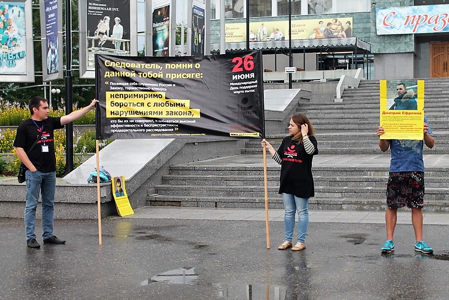 26 июня на площади им. Никонова в Йошкар-Оле был организован пикет в поддержку жертв пыток, его организовали сотрудники Комитета по предотвращению пыток Дмитрий Яликов и Данила Чендемеров, — сообщает корреспондент «7x7».