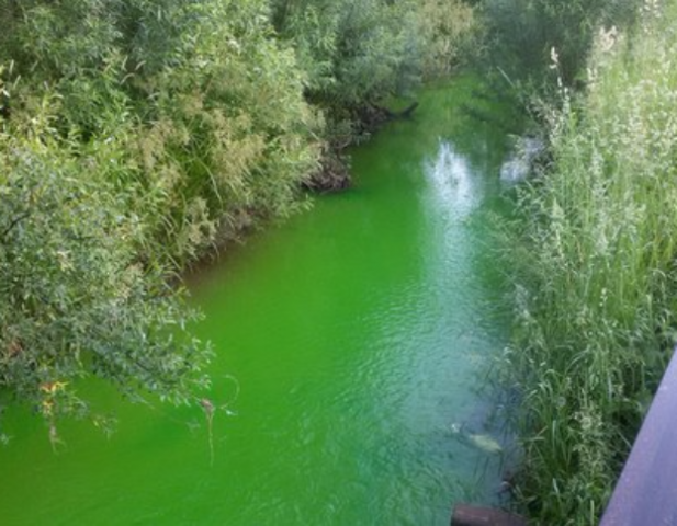 В Перми река окрасилась в ядовито-зеленый цвет из-за утечки на ТЭЦ