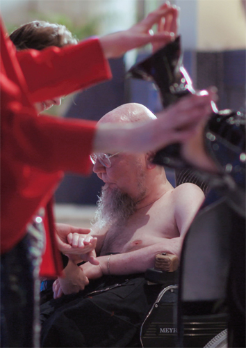 В то же время привлекательность может быть очень субъективной. Это то, что я ценю в «Армии любви» — и в фильме, и в группе людей, которую мы формируем для Висбадена. Есть недееспособные люди, считающие себя очень аттрактивными, и они действительно привлекают. Маттиас сказал мне, когда я его впервые встретил: «Должен признать, большую часть жизни у меня не возникало проблем в поиске партнеров для секса. Всегда были люди, которых я привлекал». Он вырос в Восточной Германии, где основал коммуну, что само по себе было нетипично. К тому же он очень харизматичный собеседник. Он считает, что у него все-таки есть две проблемы. Во-первых, находит ли он притягательными тех, кто находит притягательным его? Во-вторых, у него мышечная дистрофия, и когда его состояние усугубилось, для него становилось все сложнее и сложнее поддерживать надлежащие отношения, поскольку на это требовалось очень много сил. Поэтому в последние годы он имел все больше и больше секса или интимности (вроде ужина) с проститутками. При этом он находил унизительной плату за интим с другими людьми. Но именно здесь может прийти на помощь «Армия любви».